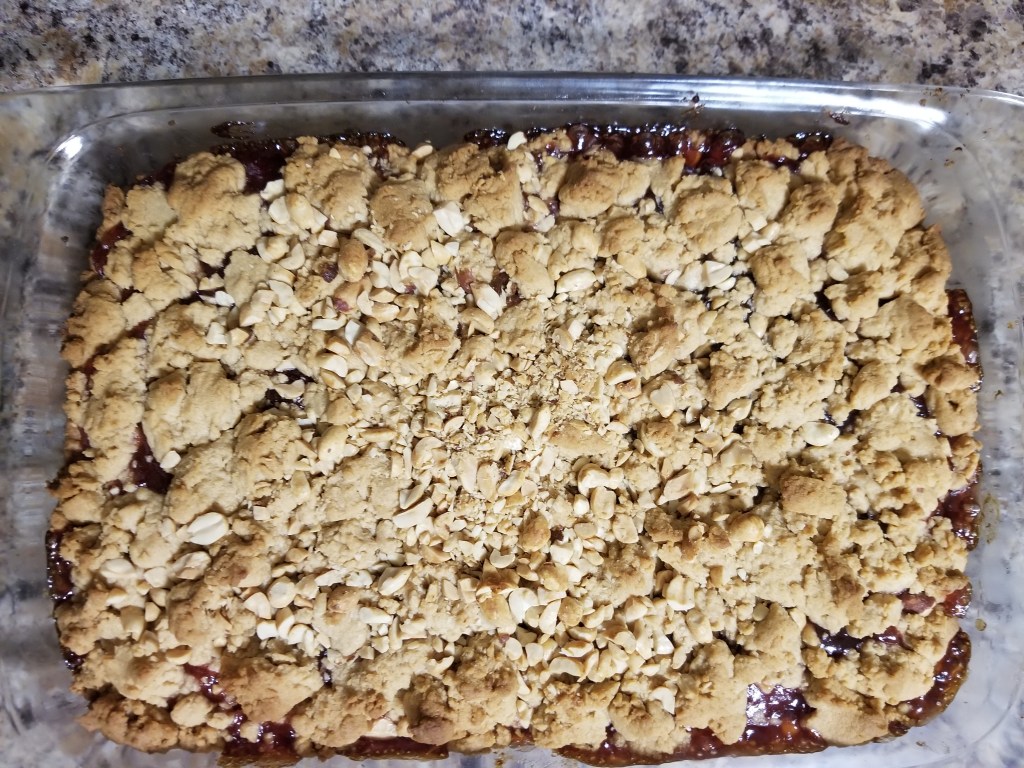 And then while the kids napped, I hit up the grocery store and did some MORE baking. I told you, 2x in one day! First photographed is pumpkin coconut bars. Followed by PB&J bars.