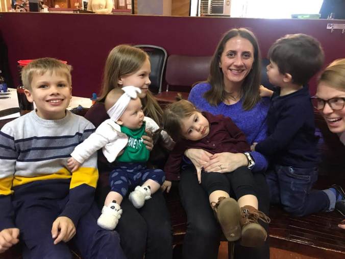 After bowling, the whole family headed to a nearby restaurant for dinner. We had rented out a banquet room, which was perfect to let the kids run around in.