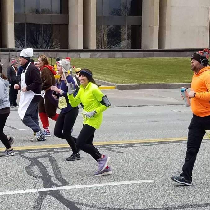 Thursday morning, B and I did the Cleveland Turkey Trot. My parents had come into town the night before, and they watched the kids in the morning so B and I got to run kid-free. It was a windy morning, so I was grateful not to have to push the stroller.