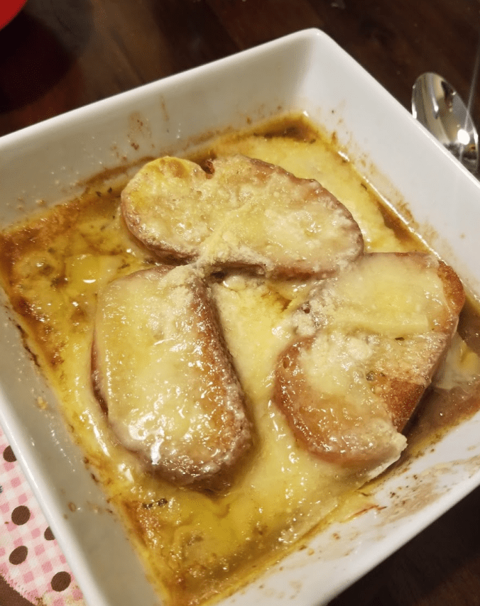 That night, the weather turned cooler and rainy. B made us French onion soup. It was the perfect food for the weather AND perfect end to a great long weekend.