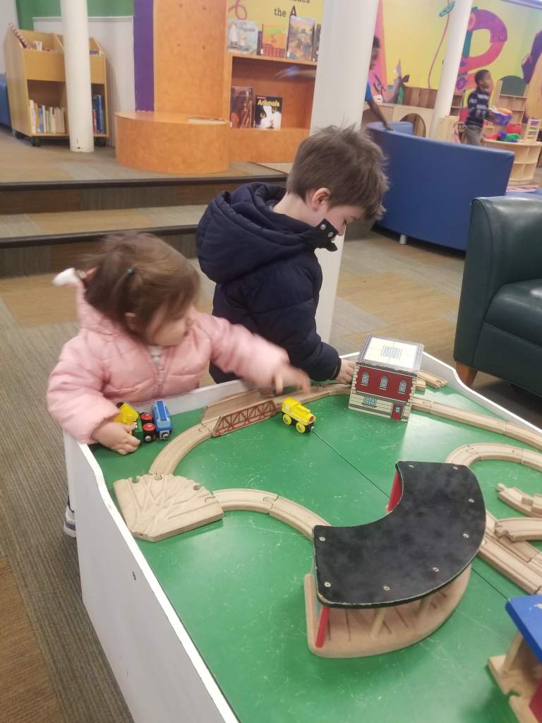 Friday afternoon at the library. I have 8 days of vacation left this year, so I took off early a few hours on Friday and picked up the kids and headed to the library! We had a great time playing with their toys, the puzzles and of course reading and picking out some books to bring home.
