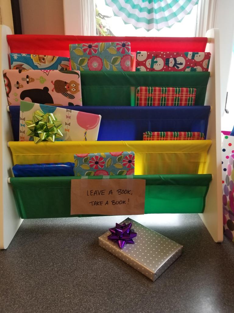 As part of the party, they asked people not to bring gifts, but instead, bring a wrapped book for a book exchange; and each kid would leave with a new book. What a great idea!
