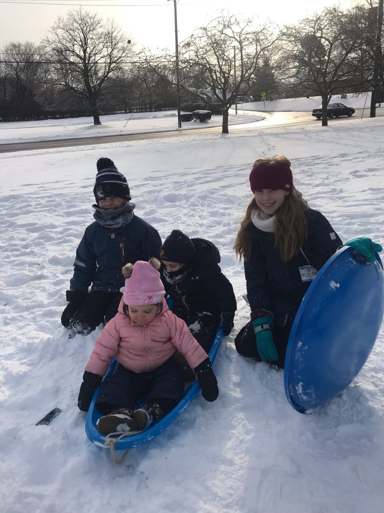 Saturday morning, we braved the cold and snow for some sleigh riding! The kids got in a few good runs down the local hill.