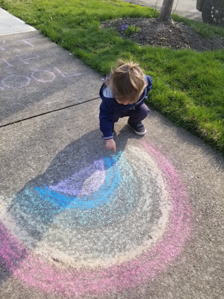 Lots of walking around outside, including checking out the nearby sidewalk chalk art.