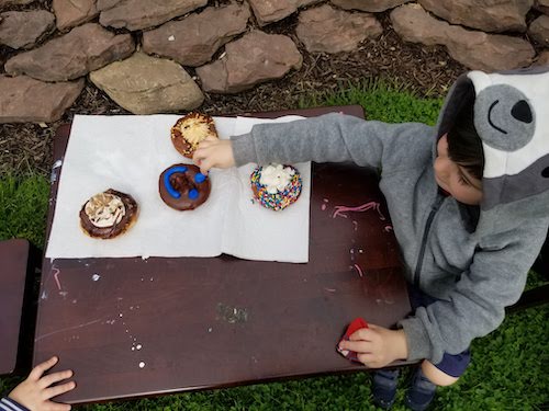 Oh yeah, and there were donuts involved this weekend, too. Because right near the zoo is one of our favorite donut shops. So we had some socially distant donuts with friends!