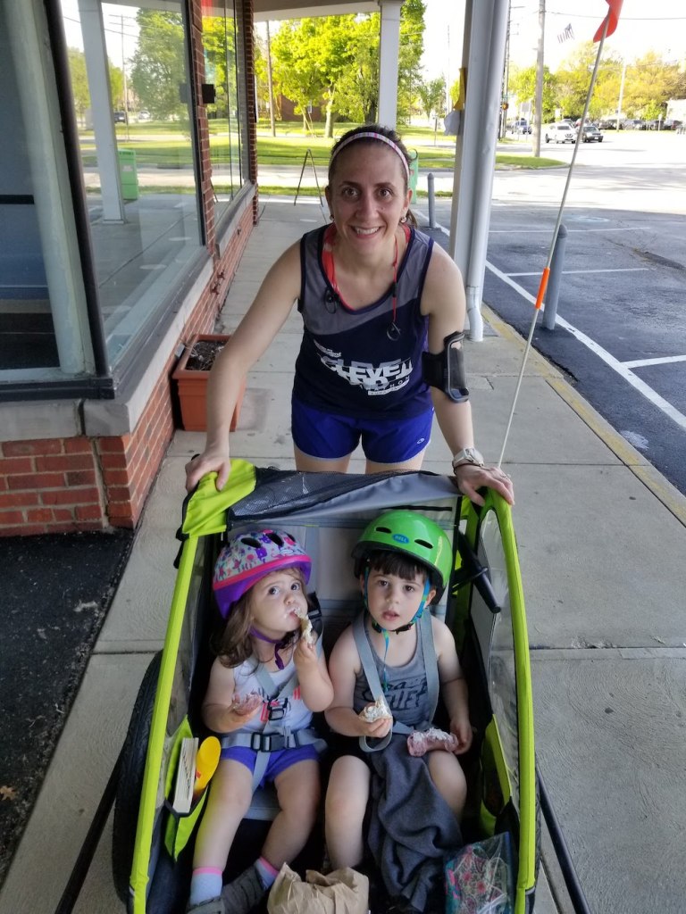 We took a bike ride to the bagel shop! Well B and the kids biked – I ran there and then they biked next to me while I ran back. Bagels are LM’s favorite breakfast.