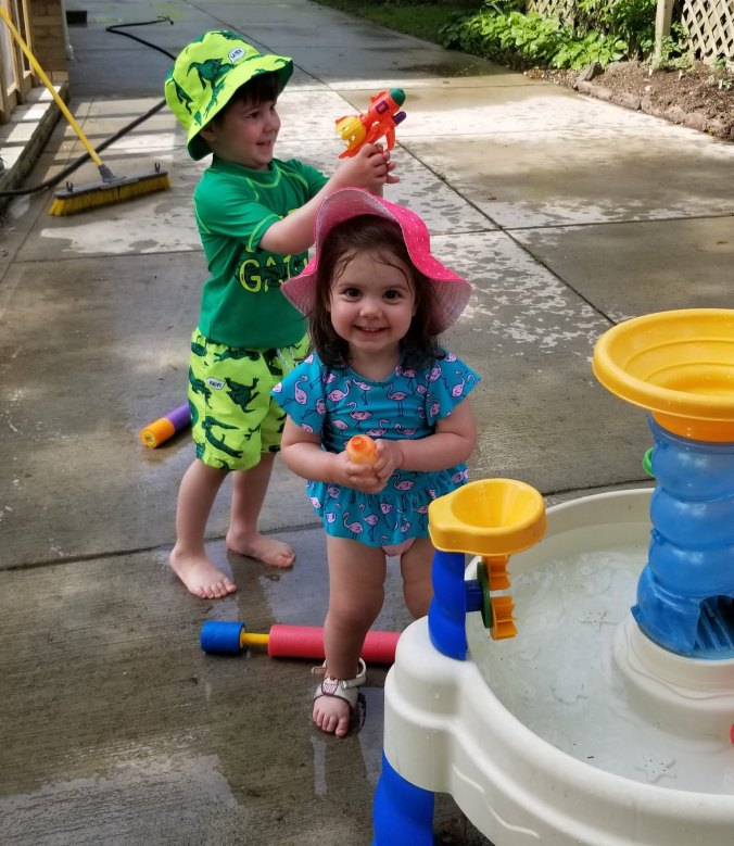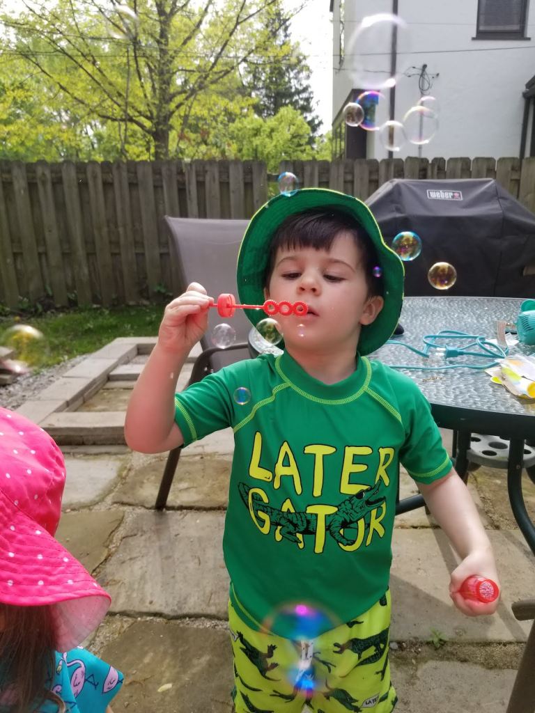 The day also included some water table time and bubbles. Because when it’s 80 degrees, there’s nothing better than some time outside with water!