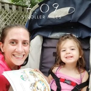 Sunday, I got in a stroller run/walk with LM! We did 7 miles, which is more mileage than I’ve ever done with a stroller! It wasn’t all a run – I did a lot of stopping to entertain her, give her food, get books, get her more water, and even go into the house to get a new book and rain boots for her as it started raining halfway through the run.