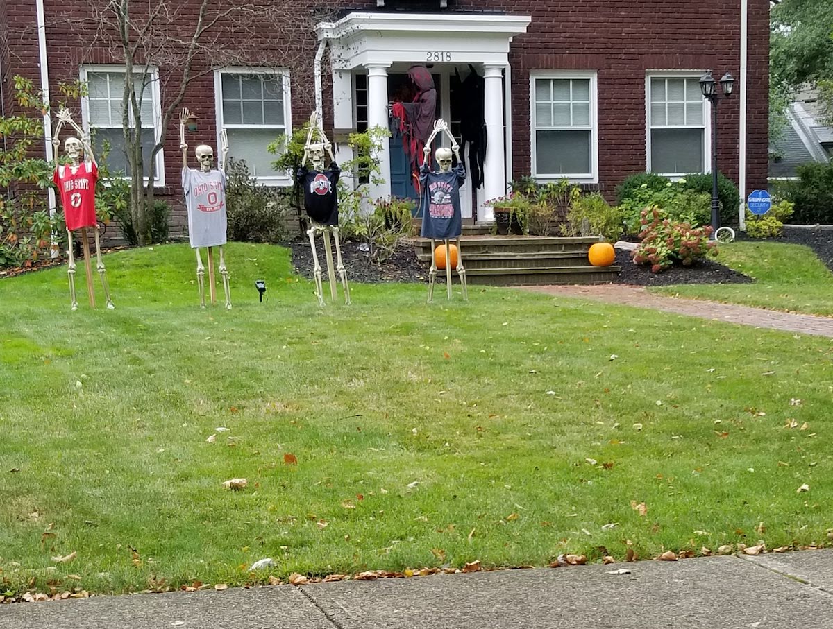 I’ve also seen some great Halloween decorations this week! Take a look at these O-H-I-O skeletons.