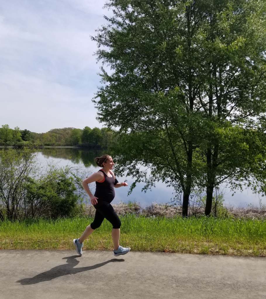 Luckily, about 12 minutes away we found a paved 1.6 mile trail around a small lake. It was perfect! Relatively flat, paved and then we were able to do two laps to get in my 5k mileage.