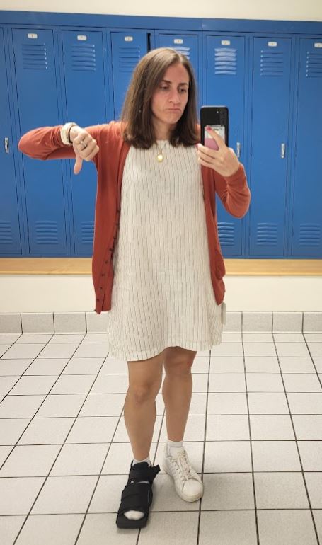 Wednesday: 0 miles running, doctor’s orders! I did a bicep and back workout, some core workout, 20 minutes on the indoor bike and that was it. I am so bummed about my toe. A pinky toe at that! With the confirmation that it was broken, I did not run – instead I attempted to do an exercise bike with the special shoe on, but have a message into my dr to confirm that this is okay. I also did the next day of my sister in law’s weight-lifting workout, which included some back and biceps. I never lift weights so this was not easy!