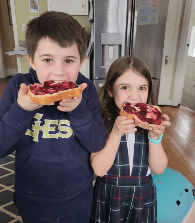 Not running related, but I had lunch with some former coworkers, and one of them makes her own grape jelly with a friend. My kids LOVE her jelly (they call it “Debbie jelly” after her, and she brought me a jar! As soon as the kids got home from school, that’s of course what they wanted for a snack.