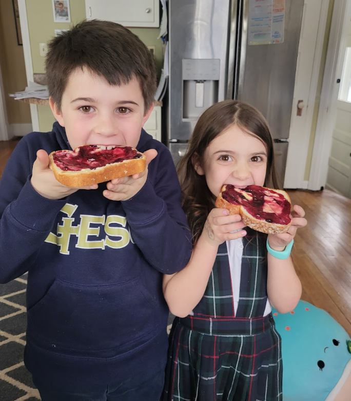 Not running related, but I had lunch with some former coworkers, and one of them makes her own grape jelly with a friend. My kids LOVE her jelly (they call it “Debbie jelly” after her, and she brought me a jar! As soon as the kids got home from school, that’s of course what they wanted for a snack.