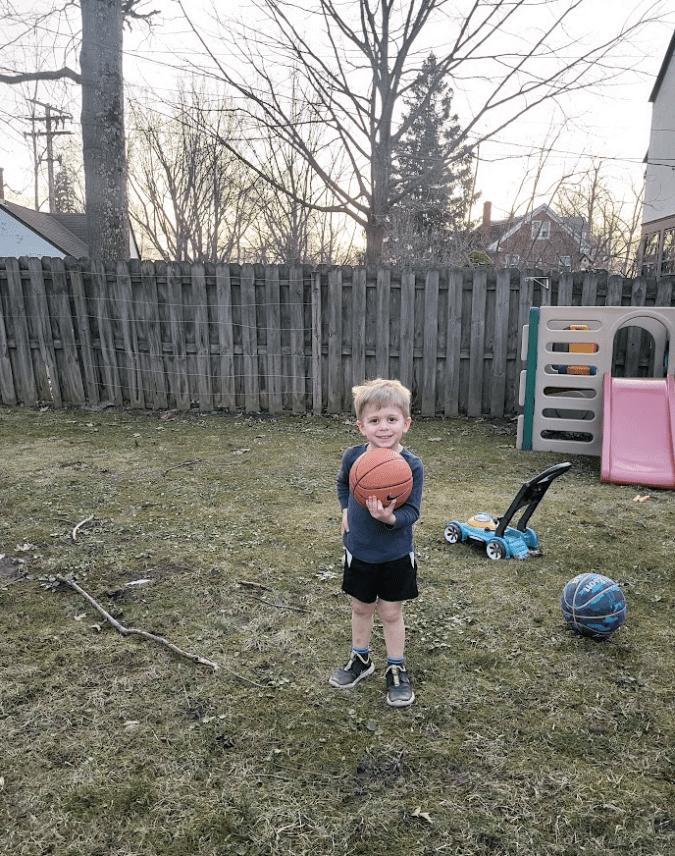 That day ended up being so nice outside that the kids could play basketball outside after work – and in shorts. It was such a tease!