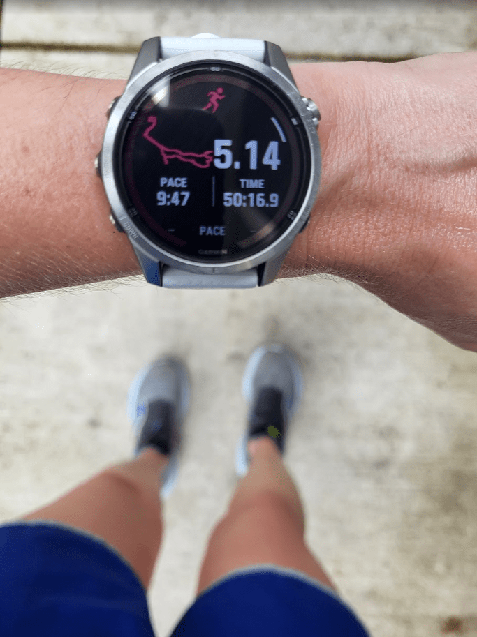 Monday: 5.14 outdoor miles, plus shoulder and legs and ab workout, 2 miles walking– We had friends over until 10 p.m.ish on Sunday night, so I didn’t get to bed until late. BUT I was able to wake up after 5 am (late!) and do my weights and then run outside during the sunlight, so all was good! I also got in 2 miles walking during my day as well.