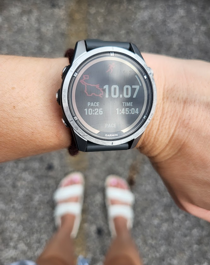 We had a busy day Saturday, mostly getting ready to host a house party to celebrate our home – it turned 100 years this year! So, I knew I wanted to get in a long run to help me cope with the day. I set my alarm but when I woke up, it was thunderstorming, so I decided to wait it out a little bit. It looked like rain for at least another hour, so I finally decided to get out of bed and hop on the treadmill. I got in 3.1 miles on the treadmill, when it looked like the rain may stop soon, so I then finished up with 7.03 outside. It was 97% HUMIDITY when I got outside and although it wasn’t SO hot (“Feels like” in the 80s) I sweated SO much! I got home after my 10 miles and my shorts and everything was soooo soaked. My cold was lingering, but I was glad to get outside and run.