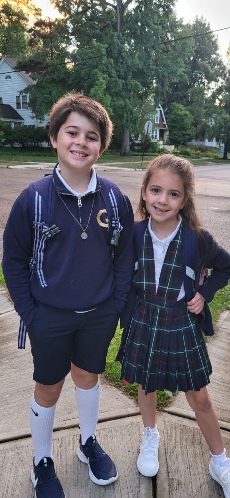 Your kids look so cute in their uniforms. My sons went to Catholic school as well and it was so nice having them in uniforms.