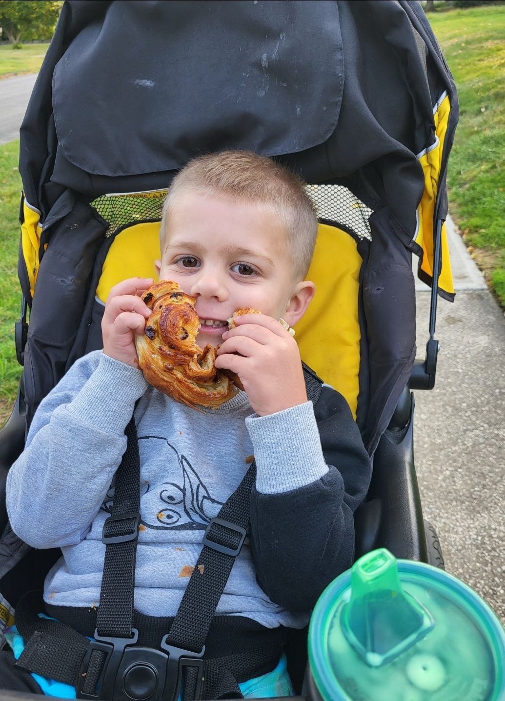 What a beautiful day! GM wanted to walk to get bagels and treats, so we walked to the bagel, coffee and bakery shops after the big kids were off to school. I think he was happy to sit in the stroller after all the walking he had done the day before. I also got in a 1 mile walk/jog on the treadmill and some weights before work, and then some walking on the treadmill while working. AND I also got in a walk at lunchtime. It was such a gorgeous day, and I’m glad I was able to take advantage of it.