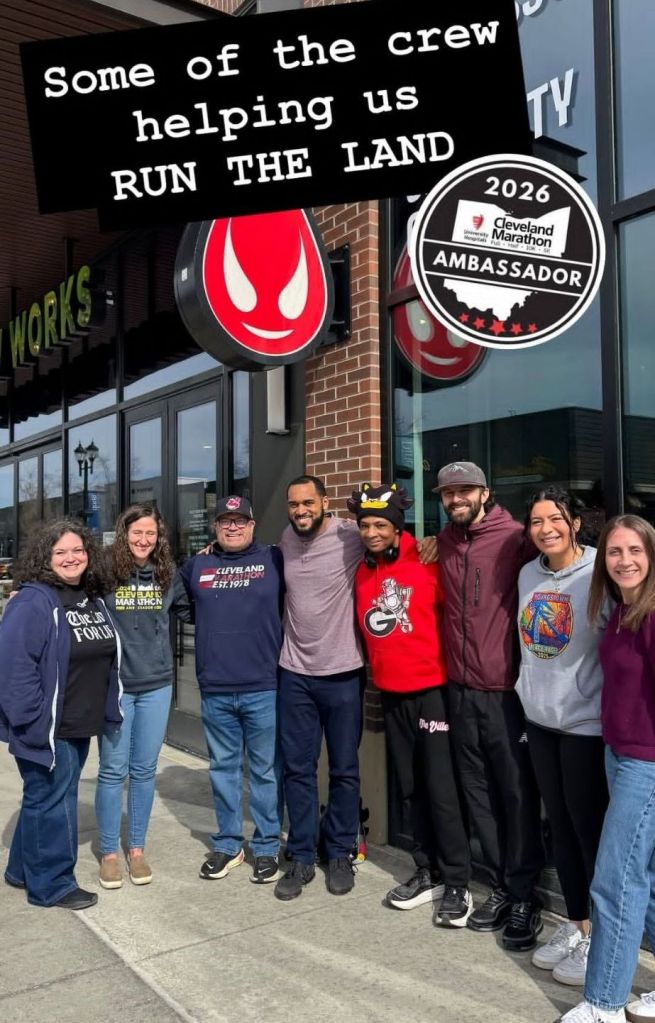 After my run, we had an early soccer game for FW, a birthday party for LM, and a meet up with some family in town that I had to skip because — I had a Cleveland Marathon Ambassador meet up! We had a buffet lunch and drinks courtesy of the race organizers. It was so great to see my fellow ambassadors – both former ones and meet some new ones!