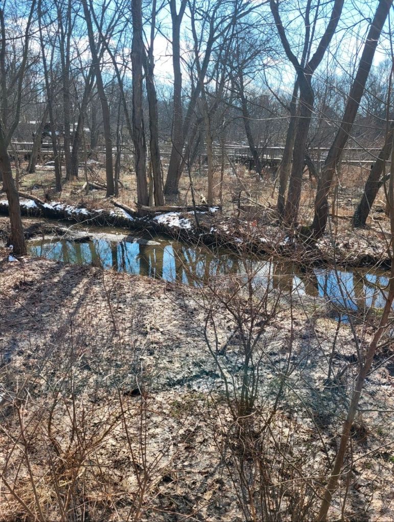 I was able to get another outdoor walk at lunch time — that’s 3 days in a row! And even more snow has melted. It was in the mid-40s when I got out to walk, which felt great!