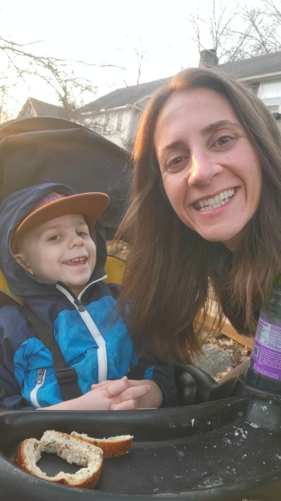 I did some leg exercises (step ups, kettlebells) and a core workout, and then hopped on the treadmill for another walk. I did mix in a few minutes of SLOW jogging again to see how it felt. Note – it did not feel normal, so I will not be doing that again 🙂 But I also got in a little walk with GM to start y morning. We picked up some bagels at our bagel shop before it was time for me to work and him to go to school. It was 55 degrees at 7 a.m. and our first pre-work walk in forever!