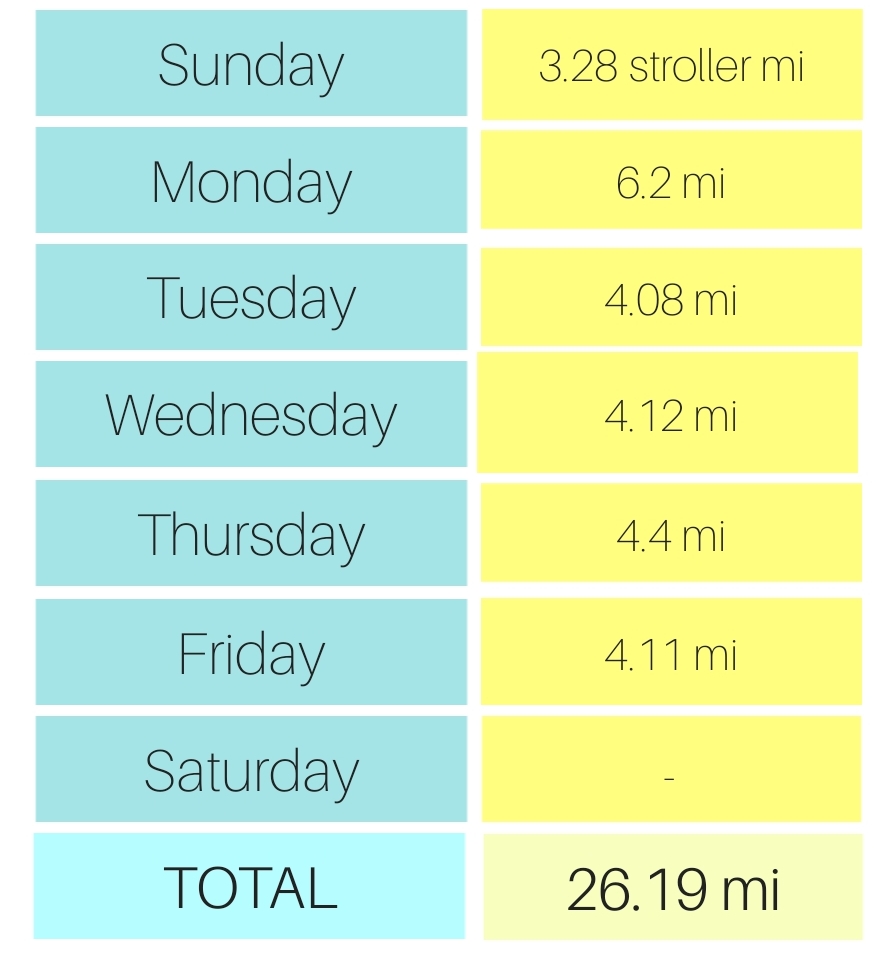 Sunday – getting in a family stroller run! This is the second week in a row we were able to do this and it was amazing. I loved running with FW (in the stroller) while B pushed LM in the stroller. I typically run by myself in the morning, so it was nice to be able to run with the whole family.running with the BOB stroller