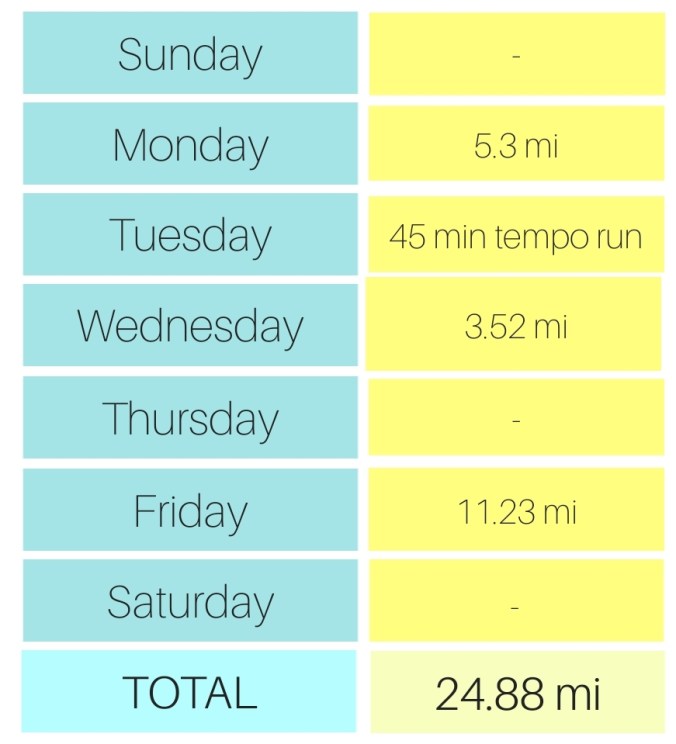 Here’s a look at week 7 of my Cleveland half marathon training: