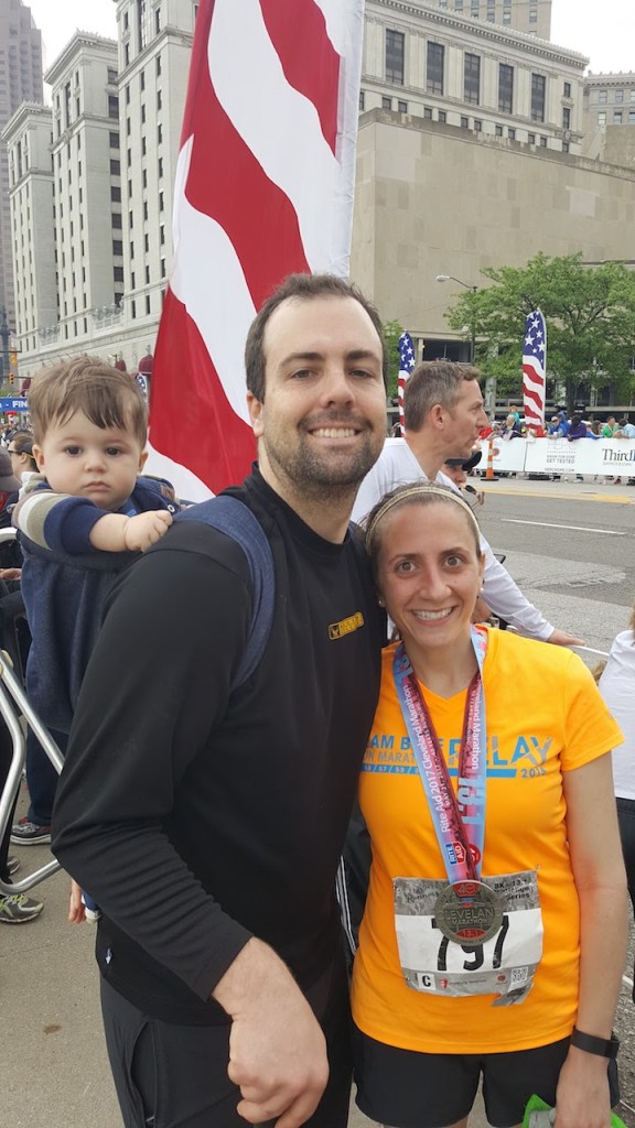 I did a few races while pregnant, including two 5Ks and a 10K a week before my due date. Thanks to B for convincing me to sign up for a 5K race Mother’s Day weekend, as well as for running beside me as I hobbled the Rite Aid Cleveland Marathon 5K and 10K four days before LM was born.