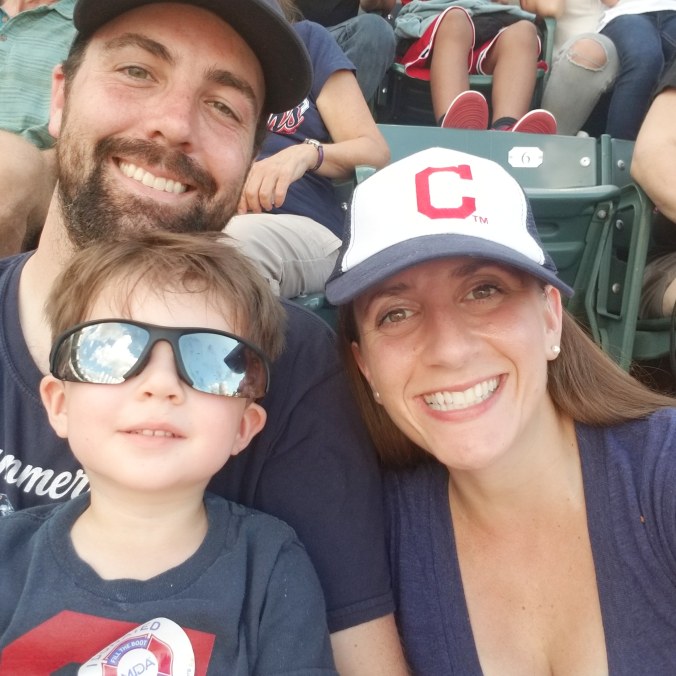 And then it was time for baseball! We left LM with a babysitter, and FW, B and I went to the Indians game. We stayed for the whole game- I was impressed with how good he was for 9 innings.