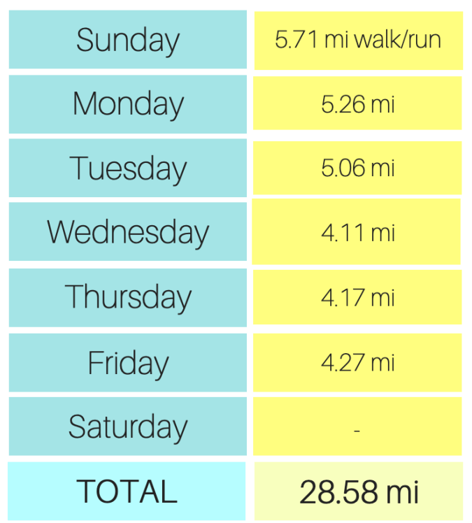 Here is a look at my mileage this week: