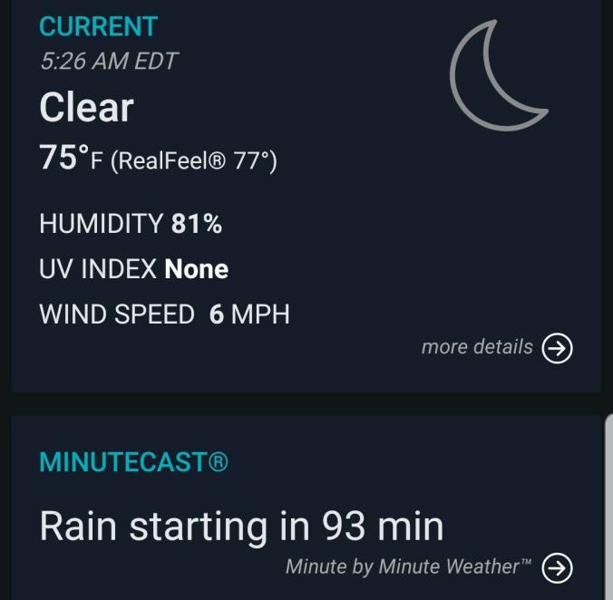 It was humid many mornings. I know 75 isn’t HOT but it was 80%+ humidity at 5 a.m.!