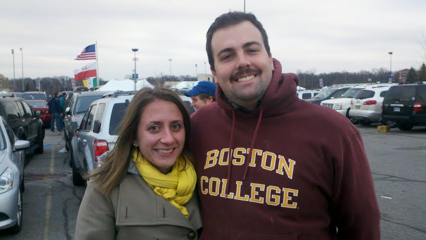 Sunday we got up early. No, you may recall that I wasn’t running the marathon or half marathon, but I still woke up around 3 a.m. – to drive to Notre Dame for B’s sister’s graduation. It was a long day, and made me think of my gradation from BC. The night before, it’s a tradition for the seniors to stay up – all night – and watch the sun rise over the Boston skyline. Sentimental? Yes. Cliche? Maybe. But I loved every minute of those last few days, spending time with my friends, cooking out on our Mod lawn, staying up all night, and barely making it through the commencement without falling asleep.