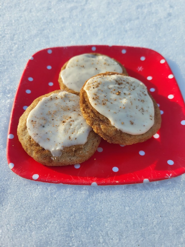 Here you go – here is the updated Taylor Swift Chai Cookie Recipe. These are similar to a spiced snickerdoodle cookie with a buttercream eggnog frosting. And because of the butter, this frosting actually hardened and was great/easy to freeze!