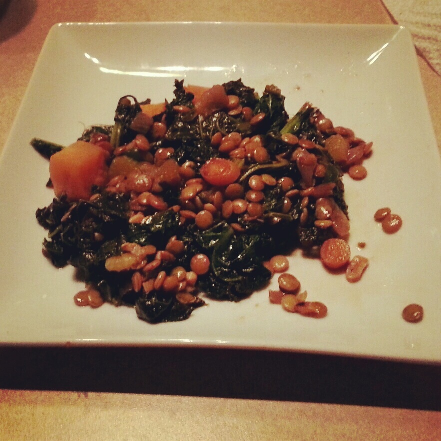 Spicy Kale with Lentils and Sweet Potato (modified from Eat Live Run)