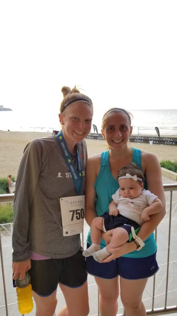 Friday night started with a race! It was actually my first race since LM was born. One of the boards that B is on was hosting a 5k fundraiser (The Sunset Sprint 5k) to kick off the USA Triathlon weekend that was taking place in Cleveland. The course finished through the triathletes’ finish chute and included most of the sprint’s 5k course.