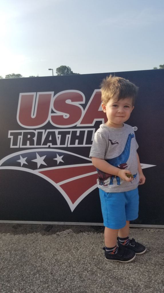 Sunday morning started EARLY – I got up at 4:30 to feed LM before getting FW ready — we were headed out to watch B compete in his first triathlon! I’m so proud of B – he didn’t have much time to train after LM was born, and all his runs and bike rides were done with a kid either in a trailer or stroller.