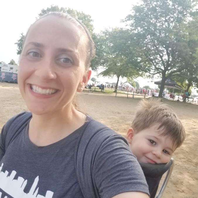 To say we had a busy weekend is an understatement. From 5 pm Friday through Sunday, we had something going on pretty much at ALL times! The weekend started with a 5K (for me) and ended with a triathlon (for B), but also included some park time, a cookout and friends visiting.
