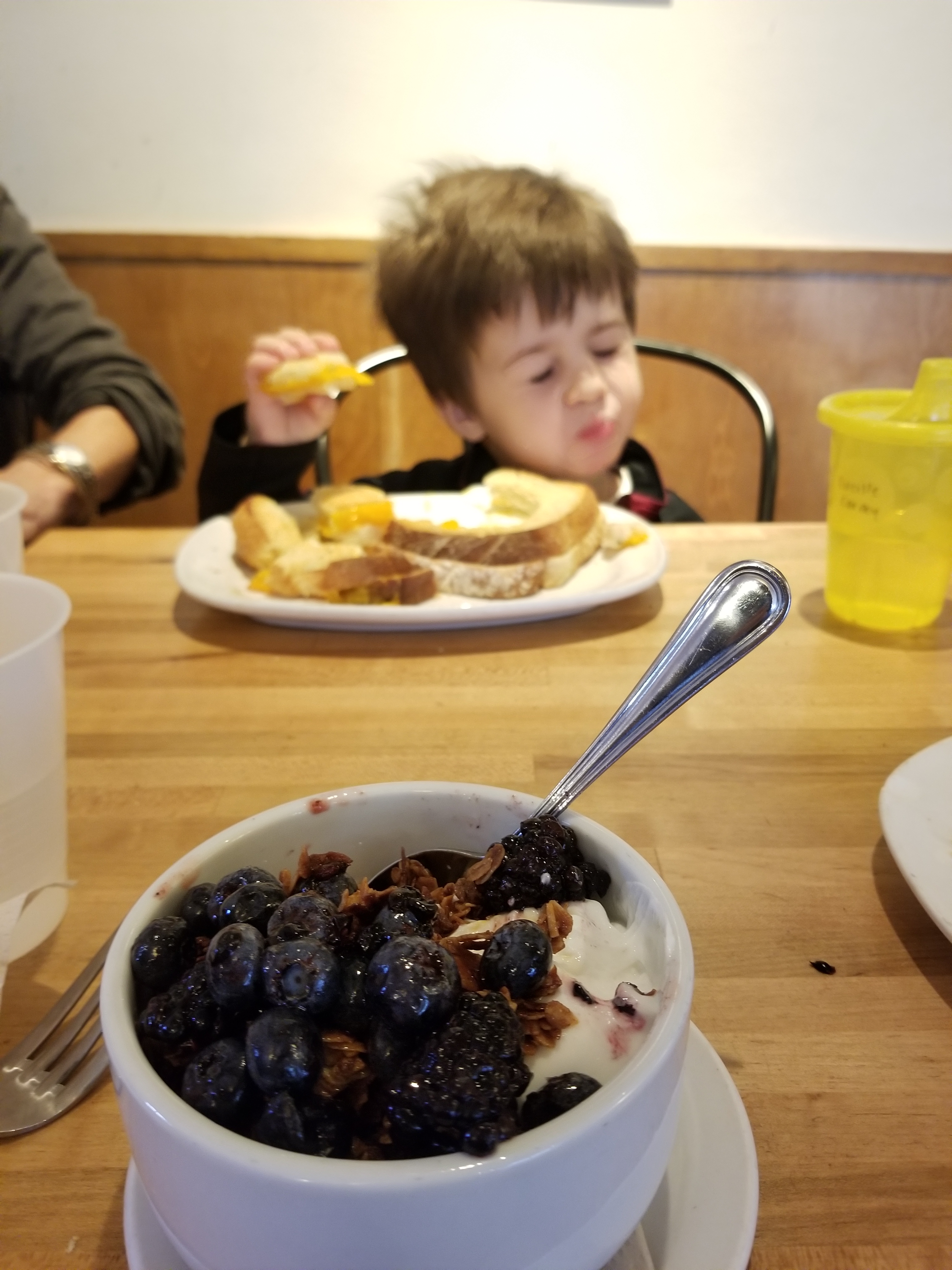 Sunday morning started with a stroller run – FW and I ran to the bagel shop again and brought home breakfast.